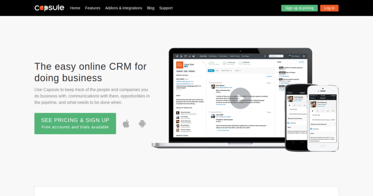 As customer relationship management becomes increasingly important to the success of a business, versions of CRM software have sprouted with varying results and capabilities. Capsule CRM offers an online rendition that is both user-friendly and flexible. Online CRM Software from Capsule features email organization, task management and customization. Manage your client relationships by simply accessing your account online, and with a few clicks of the mouse, check on your company's sales pipeline. Since all information is stored in one place, an unexpected phone call from a customer won't catch you off-guard even when you're on the go, just log into the app version from your mobile device. Once you've set up your dashboard, integrate your favorite tools, including invoicing, marketing and forms. If you're not ready to commit to Capsule's CRM service on day one, enjoy a free trial with no strings attached, and then, upgrade to your desired package.