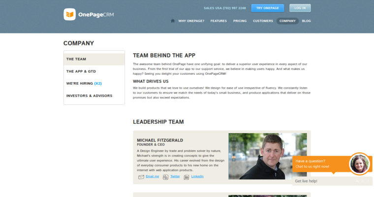 Anyone looking for a truly simple online CRM software should take a closer look at what OnePage has to offer. This platform was designed specifically with simplicity in mind, allowing sales teams to focus on their sales and not on the CRM software. OnePage gets rid of the clutter and overly complex features that often make other CRM systems very difficult to get used to. With this online platform, users can get started in just a couple of minutes with no special training required. As it is an online platform, all of the data is accessible from anywhere with Internet access. Smartphone and tablet apps are also provided. OnePage's simplicity also extends to its pricing structure. There is one affordable plan with the choice to pay either monthly or yearly. Unlimited contacts, notes and deals are included, together with 1GB of file storage space for each user.