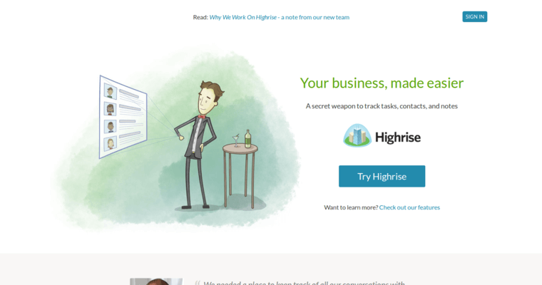 When it comes to making the best of your contact list, you need the right customer relationship management (CRM) software available. Highrise CRM delivers all the data you need to nurture your target customer and turn a prospect into a sale. Your CRM allows you to track the source of your contact, record all of your interactions with them and follow up afterward. You can run reports to see the effectiveness of your email campaigns, and see historical data at a glance. You can find out which customers owe your company money. Never again will you miss another client's birthday, anniversary or renewal date. You can even send follow up emails and link your CRM to your autoresponder to make sure you are always first in your customer's mind. Assign prospects to your sales agents and watch your profits increase instantly. Highrise CRM delivers on its promise to make your customer relations process simple and effective.