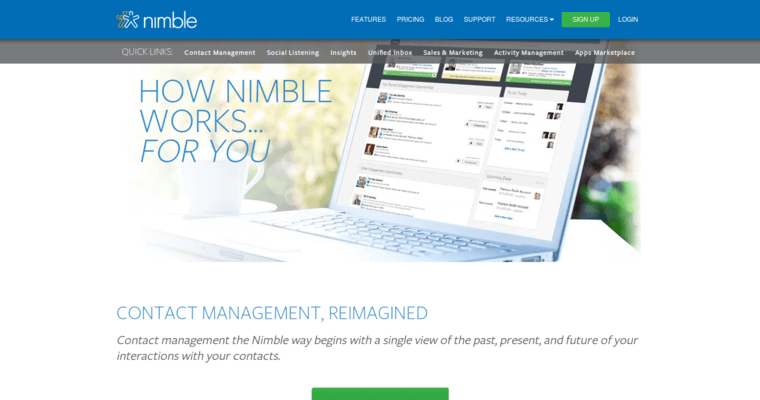Nimble is your clever CRM for G suite and office 365. With Nimble, you will have everything required for your growth without having to work for it. Here is how Nimble helps its clients. It Manages Relationships Data-entry-free Nimble has a feature that allows it to automatically update with the right prospects and client details from many data sources. Clients are able to get information such as where they go to work, where they schooled, their places of residence and how they are connected to you. See Customer Interactions with Ease You can have anything you need about team client engagement at the tips of your fingers with Nimble. Nimble collects all calendars, emails, contacts and social interactions of your clients from any place and keeps it updated. Smart Results Nimble has relationship intelligence that is very powerful. It is able to detect key contact information and convert connections into relationships and conversions into revenue.